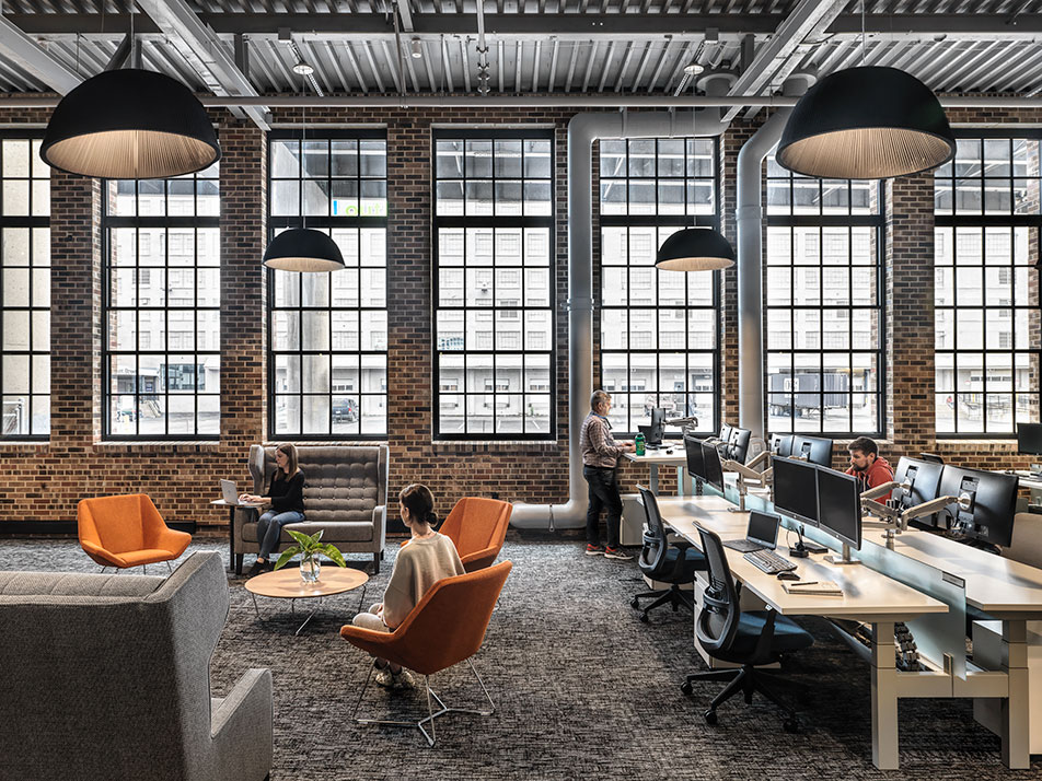 Due to the high density of workspace and the Owner’s desire for an open work space, all of the electric and low voltage cabling was run below the slab. The trenches, mixed with the various existing slab types from the original foundry, created an unlevel and mismatched floor (which was designed to be left exposed). The project team worked together to provide a product that could help float out the existing slab, could be polished and keep areas under construction during installation.