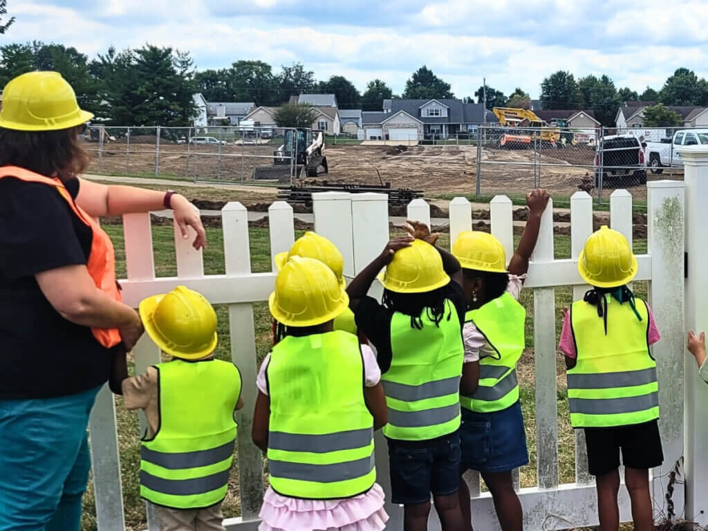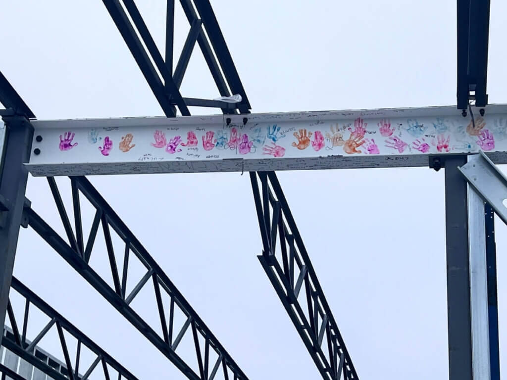 Children were also able to leave their mark on the Early Childhood Center by leaving handprints on the final beam before it was placed.