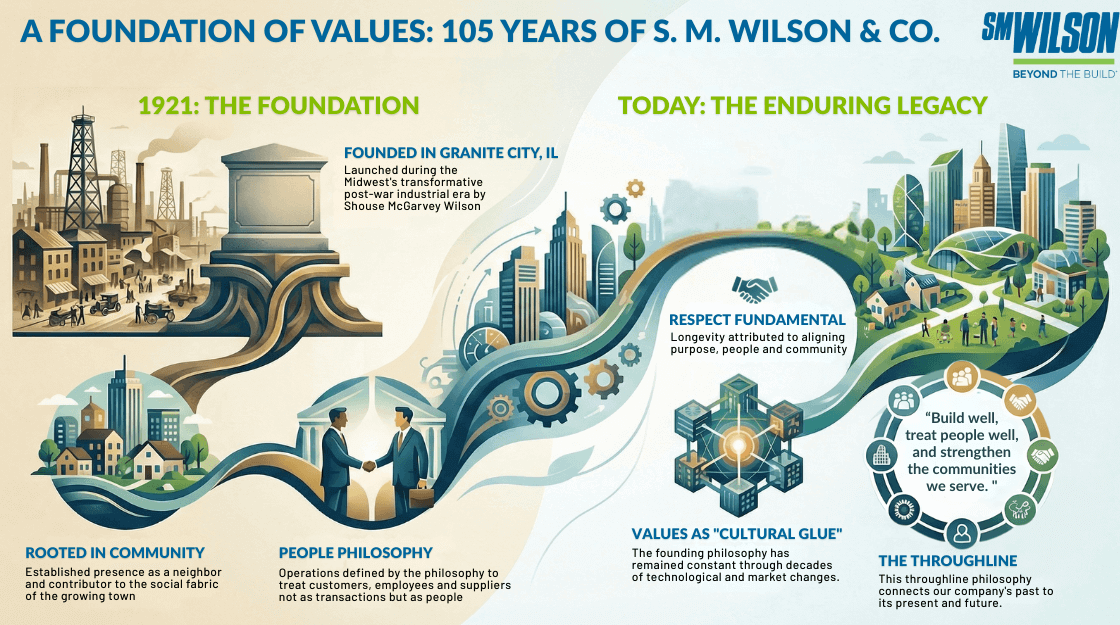 From a single founder in 1921 to a 100+ year firm delivering complex projects across the region, the throughline has always been the same: build well, treat people well and strengthen the communities we serve.